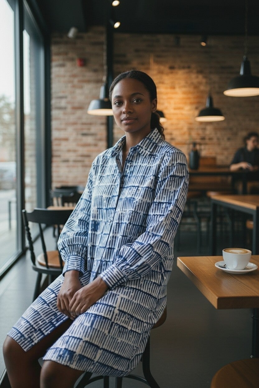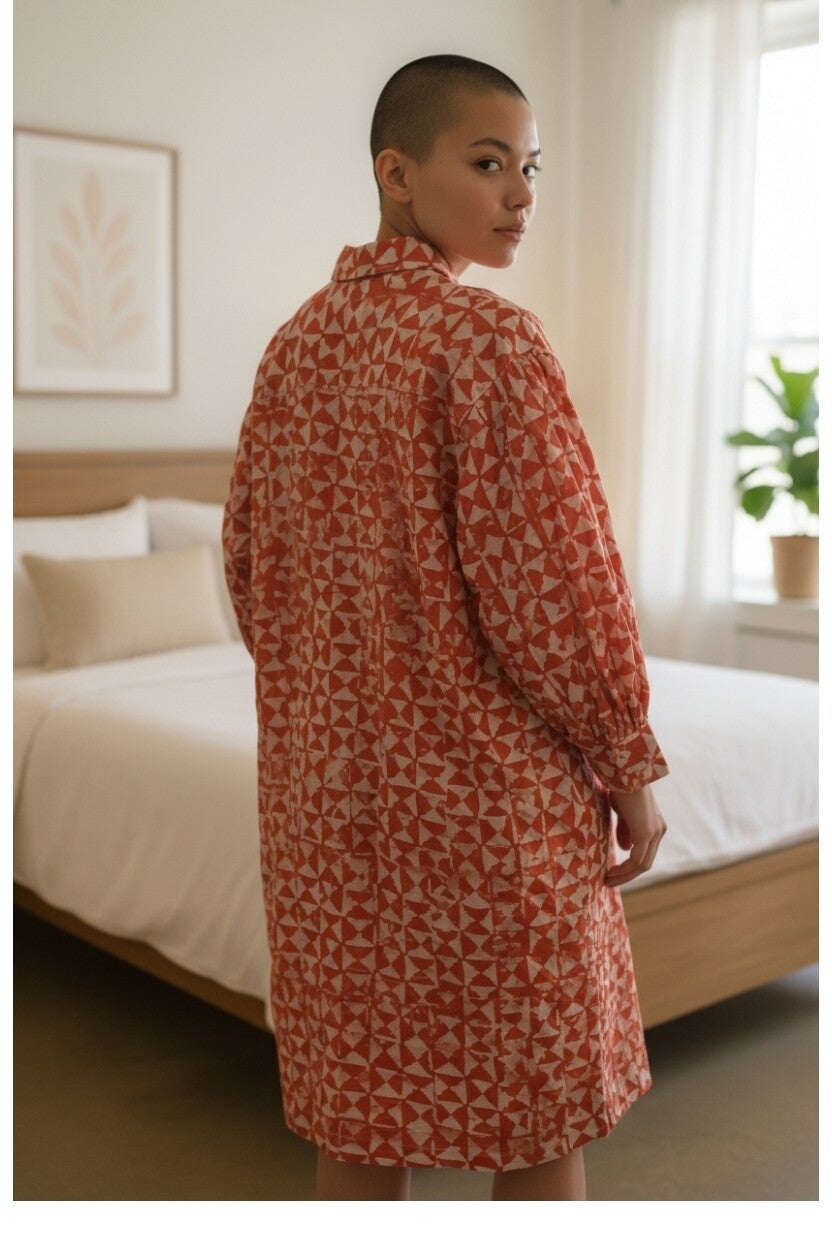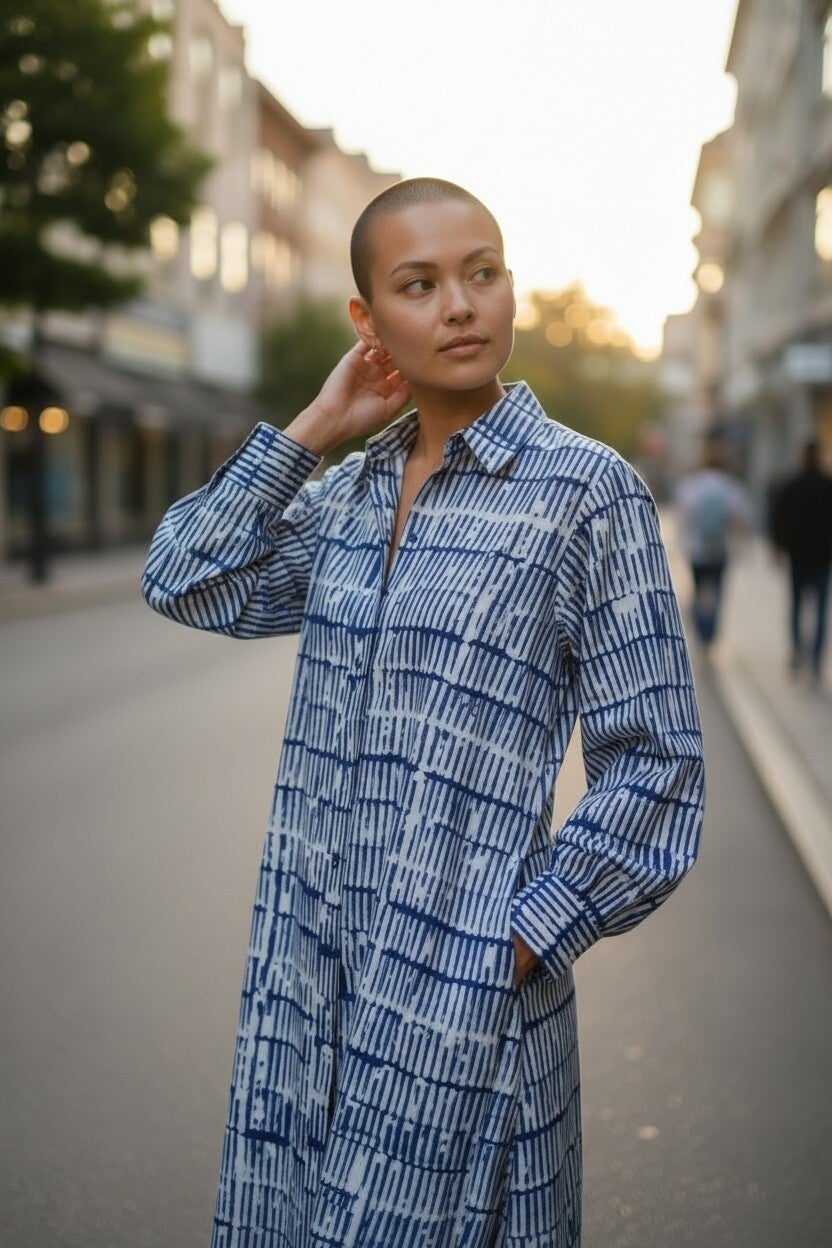 La robe Terra Armelledparis est une pièce forte qui allie confort et style. Confectionnée en 100% coton, elle offre une coupe ample et légère idéale pour le quotidien. Son motif orange et blanc apporte une touche de dynamisme et d’originalité. Dotée de manches longues et d’une patte de boutonnage, elle se porte aussi bien seule que ceinturée pour structurer la silhouette.